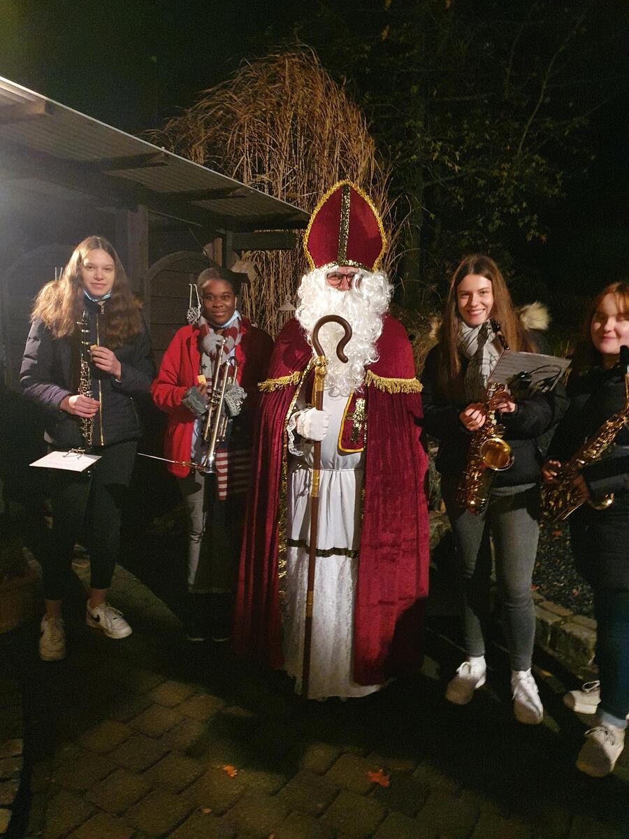 Nachdem der Nikolaus auch unserem Nachwuchsorchester eine kleine Kopie von sich selbst aus Schokolade überreicht hatte, entschwand er so geheimnisvoll, wie er auch gekommen war.
